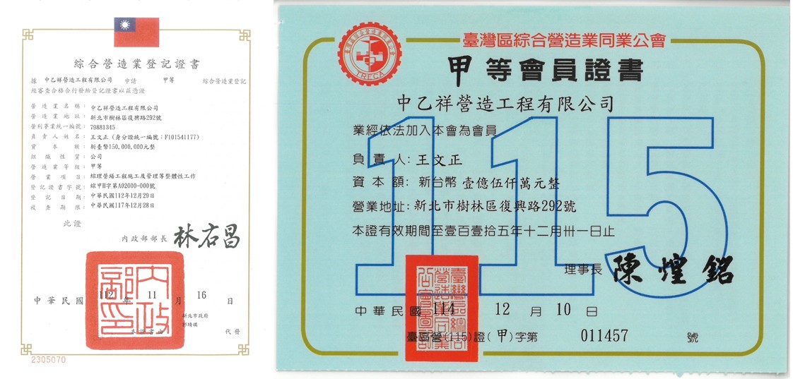 - 營業登記:甲級營造廠